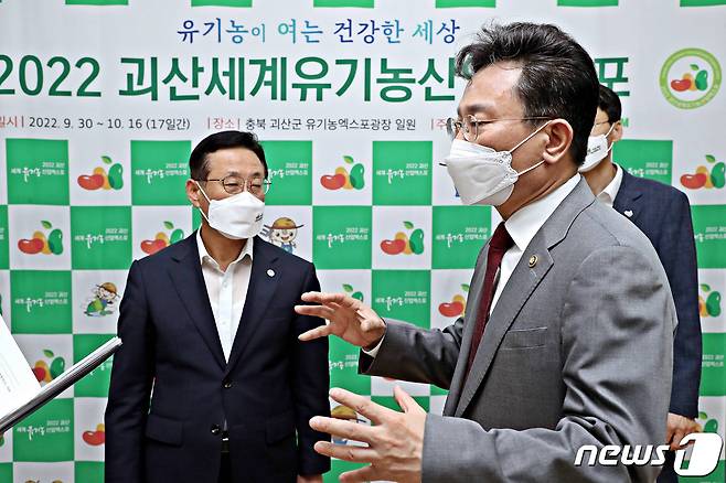 (서울=뉴스1) = 고규창 행정안전부 차관이 14일 오후 충청북도 괴산국민체육센터에 위치한 '2022 괴산세계유기농산업엑스포' 조직위원회를 방문해 운영현황을 청취하고 향후 지원사항에 대한 의견을 나누고 있다. (행정안전부 제공) 2021.9.14/뉴스1
