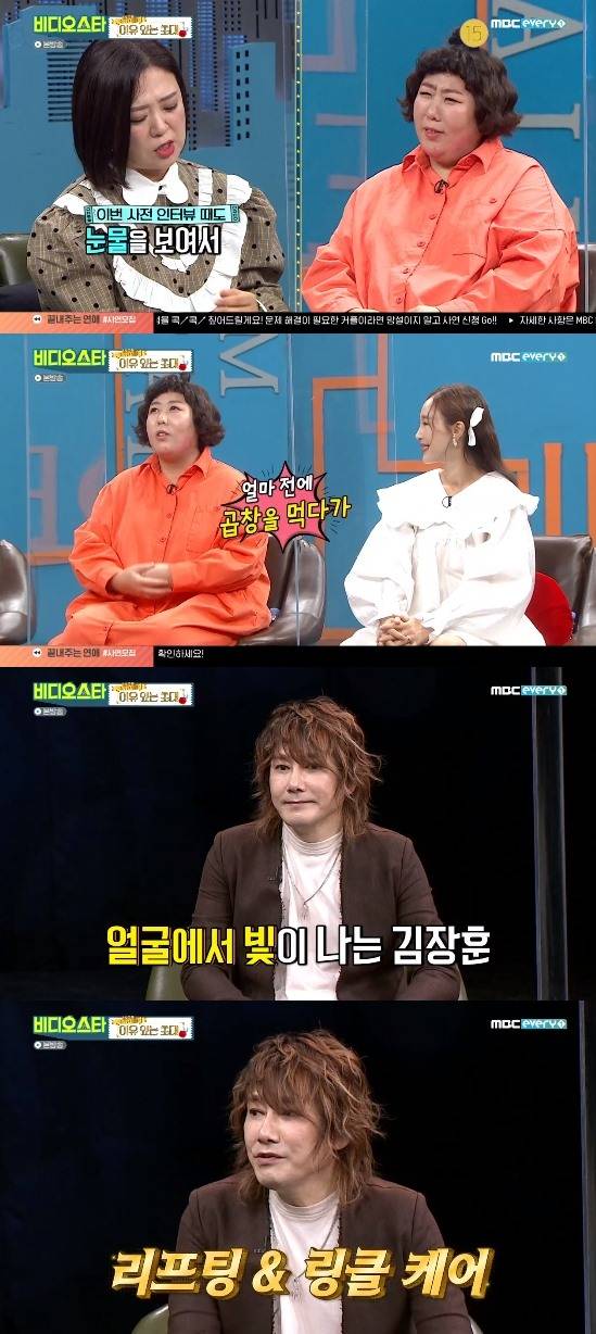 그리고 김장훈도 오랜만에 방송에 모습을 드러냈다. 특히 김장훈은 확 젊어진 외모로 눈길을 끌었고, '비스' MC들도 비결을 궁금해했다. 이에 김장훈은 "다이어트를 하다가, '비스' 출연을 앞두고 리프팅과 링클 케어를 했다. 저번 방송 때 제 모습을 보니까 사람이 아니더라. 저같은 중견배우들은 관리는 해줘야 한다. 그게 예의"라고 솔직히 말해 웃음을 자아냈다.