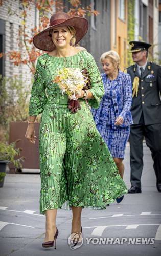 epa09467409 Dutch King Willem-Alexander and Queen Maxima are being shown around garage Bella Macchina where Italian classics are being serviced, during a regional visit in Deventer, the Netherlands, 14 September 2021. EPA/Patrick van Katwijk / POOL