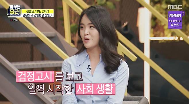 9월 14일 방송된 MBC '아무튼 출근'에서는 20대 건설현장 소장 송은혜의 밥벌이 일상이 공개됐다.