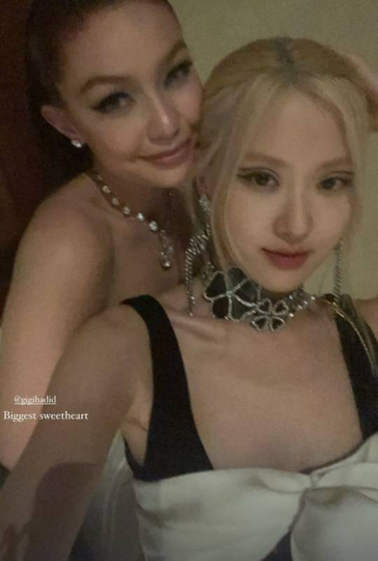 그룹 블랙핑크 멤버 로제가 세계적인 톱모델 지지 하디드와 투샷을 공개했다.