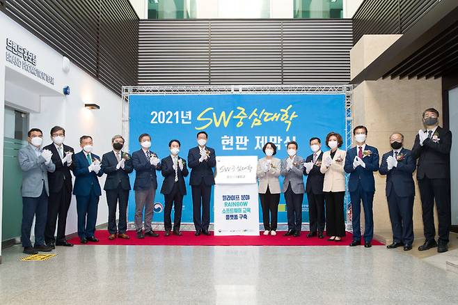 '소프트웨어 중심대학 현판 제막식' 에 참석해 기념촬영 하고 있다. (사진=과학기술정보통신부 제공) 2021.09.14. photo@newsis.com *재판매 및 DB 금지
