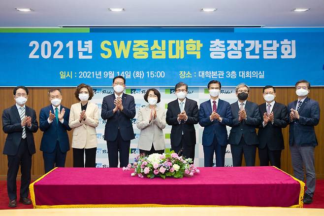 '소프트웨어 중심대학 현판 증정식' 에 참석해 기념촬영 하고 있다. (사진=과학기술정보통신부 제공) 2021.09.14. photo@newsis.com *재판매 및 DB 금지