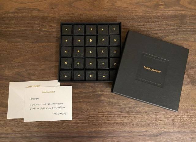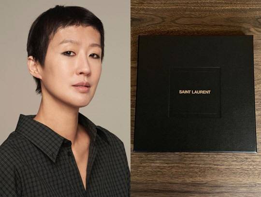 사진에는 홍진경이 프랑스 럭셔리 브랜드 생 로랑 측으로부터 받은 선물이 담겼다.