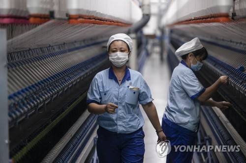 epa09467463 People work in Jiangsu Dasheng Group textile factory in Nantong, Jiangsu province, China, 14 September 2021. Jiangsu Dasheng Group manufactures and distributes textile products as the major supplier in the textile industry. EPA/ALEX PLAVEVSKI