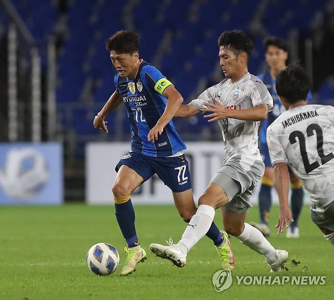 (울산=연합뉴스) 김용태 기자 = 14일 울산 문수축구경기장에서 열린 2021 아시아축구연맹(AFC) 챔피언스리그(ACL) 16강 울산 현대와 가와사키 프론탈레의 경기에서 울산 이청용이 드리블 돌파하고 있다. 2021.9.14
