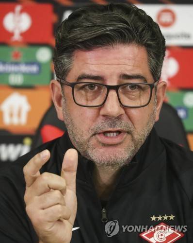 epa09467556 Head coach of Spartak Moscow, Rui Vitoria, speaks during press conference in Moscow, Russia, 14 September 2021. Spartak Moscow will face Legia Warsaw in their UEFA Europa League group C soccer match on 15 September 2021. EPA/MAXIM SHIPENKOV