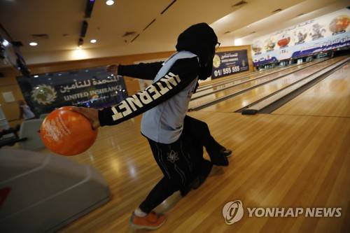 epaselect epa09466339 A Yemeni woman competes during a bowling championship in Sana'a, Yemen, 13 September 2021. A local bowling championship in Sana'a will have 32 Yemeni women taking part in the competition which will run until 16 September 2021. EPA/YAHYA ARHAB