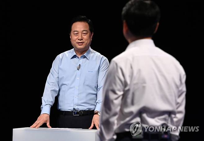(서울=연합뉴스) 더불어민주당 김두관 대선 경선 후보가 14일 오후 서울 마포구 상암동 MBC에서 100분 토론을 준비하고 있다. 2021.9.14 [국회사진기자단]