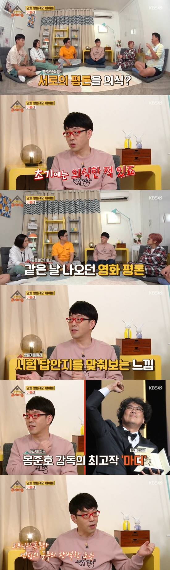 이날 정형돈은 "평론가들끼리 평론 쓰는 걸 의식하지 않냐"라며 물었다. 이에 이동진은 "초기에는 한 적 있다"라며 밝혔다.
