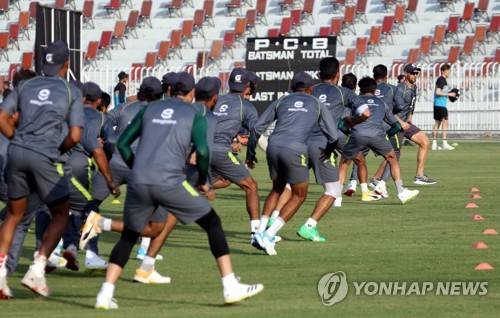 epa09467621 Pakistan's players attend a practice session ahead of the Cricket Series between Pakistan and New Zealand in Rawalpindi, Pakistan, 14 September 2021. The? New Zealand cricket squad arrived in Pakistan for their first tour in 18 years to play 3 ODIs in Rawalpindi and 5 T20Is in Lahore. EPA/SOHAIL SHAHZAD