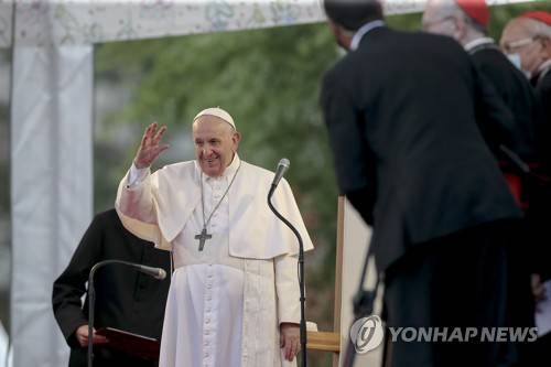 epa09467638 Pope Francis arrives for a meeting with Roma community at the Roma settlement at Lunik IX district in Kosice, Slovakia, 14 September 2021. Pope Francis is on visit to Slovakia from 12 to 15 September under the official motto: 'With Mary and Joseph on the way to Jesus'. EPA/MARTIN DIVISEK
