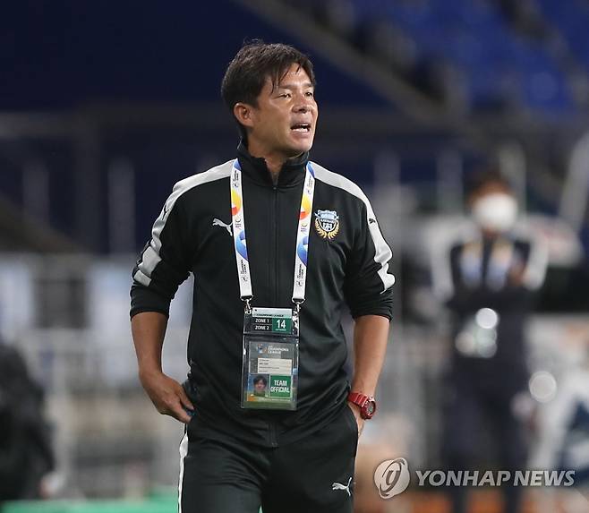 (울산=연합뉴스) 김용태 기자 = 14일 울산 문수축구경기장에서 열린 2021 아시아축구연맹(AFC) 챔피언스리그(ACL) 16강 울산 현대와 가와사키 프론탈레의 경기에서 가와사키 오니키 토루 감독이 선수들에게 지시하고 있다. 2021.9.14