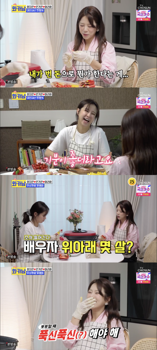 양지은은 "아직까지 남편 카드를 쓴다. 처음으로 수입이 생기고나서 내가 번 돈으로 뭘 한다는 게 기분이 좋다. 더 신난다"라고 말했다.
