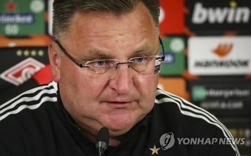 epa09467694 Head coach of Legia, Czeslaw Michniewicz, attends a press conference before his team training session in Moscow, Russia, 14 September 2021. Legia will face Spartak Moscow in their UEFA Europa League group C soccer match on 15 September 2021. EPA/MAXIM SHIPENKOV