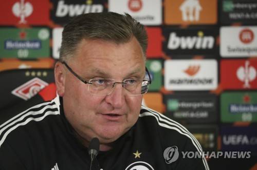 epa09467696 Head coach of Legia, Czeslaw Michniewicz, attends a press conference before his team training session in Moscow, Russia, 14 September 2021. Legia will face Spartak Moscow in their UEFA Europa League group C soccer match on 15 September 2021. EPA/MAXIM SHIPENKOV