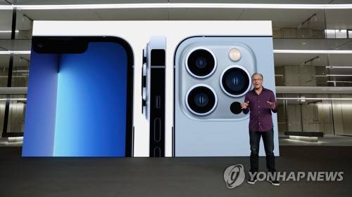 epa09468357 A handout photo made available by Apple Inc. shows Apple's senior vice president of Worldwide Marketing Greg Joswiak talking about the new iPhone 13 Pro during the Apple Special Event at Apple Park in Cupertino, California, USA, 14 September 2021. EPA/APPLE INC. HANDOUT Images cannot be altered or modified in any way, in whole or in part, that disparages Apple. MANDATORY CREDIT: APPLE, Inc. HANDOUT EDITORIAL USE ONLY/NO SALES HANDOUT EDITORIAL USE ONLY/NO SALES