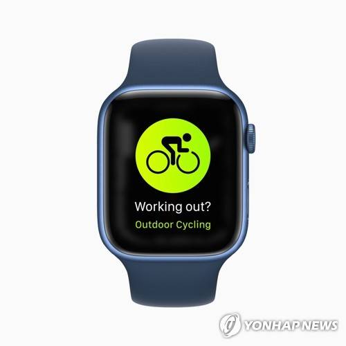 epa09468569 A handout photo made available by Apple Inc. shows the new Apple Watch Series 7 with watchOS 8 which can detect when users begin a ride, and prompts to sart and Outdoor Cycle workout if one wasn?t initiated during the Apple Special Event at Apple Park in Cupertino, California, USA, 14 September 2021. EPA/APPLE INC. HANDOUT Images cannot be altered or modified in any way, in whole or in part, that disparages Apple. MANDATORY CREDIT: APPLE, Inc. HANDOUT EDITORIAL USE ONLY/NO SALES