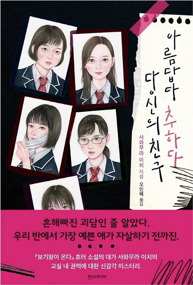 ▲ 아름답다 추하다 당신의 친구 = 제22회 일본호러소설 대상을 받은 사와무라 이치의 호러 미스터리 소설이다. 요쓰가도 고등학교에서 뛰어난 미모와 두뇌를 겸비한 재원이자 교내 서열 1위 하무라 사라사가 갑자기 극단적 선택을 한다. 그의 뒤를 이어 여왕 자리에 오르는 소녀들도 학교에서 가장 예쁜 여학생을 죽게 만든다는 전설의 주술에 휘말려 하나둘 공포와 비극에 가까이 간다. 오민혜 옮김.