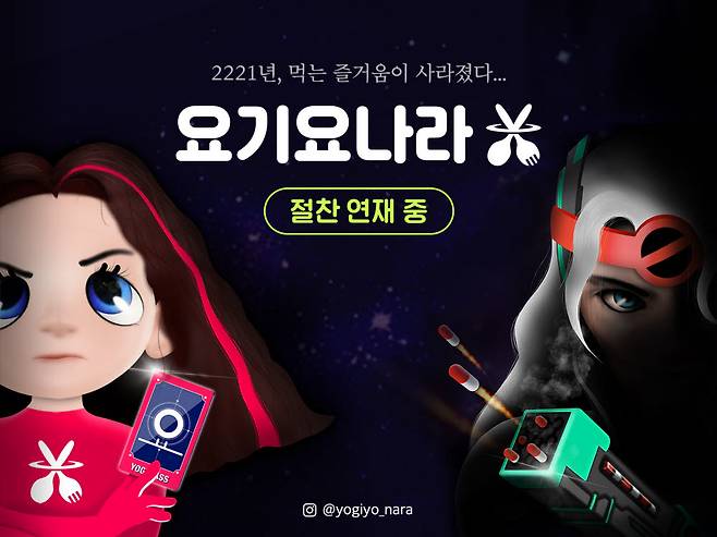 인스타그램을 통해 공개되는 '요기요나라'는 2221년 모든 음식이 사라진 세상을 배경으로 주인공 '요조이'가 맛의 즐거움을 되찾고자 타임머신을 타고 2021년으로 모험을 떠난다는 콘셉트다.