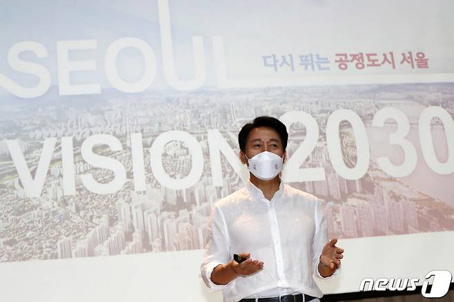 (서울=뉴스1) 이승배 기자 = 오세훈 서울시장이 15일 오전 서울 중구 서울시청에서 '서울비전 2030'을 발표하고 있다.
