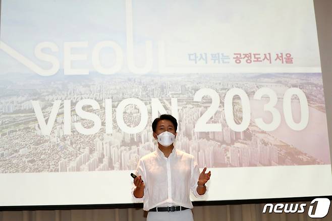이날 오세훈 서울시장이 발표한 서울비전 2030은 계층 이동 사다리를 복원하고 도시 경쟁력을 회복, 안전한 도시 환경 구현, 멋과 감성으로 품격 제고 등 4가지 정책지향 아래 16대 전략목표, 78개 정책과제 추진이 주요 골자다. 2021.9.15/뉴스1