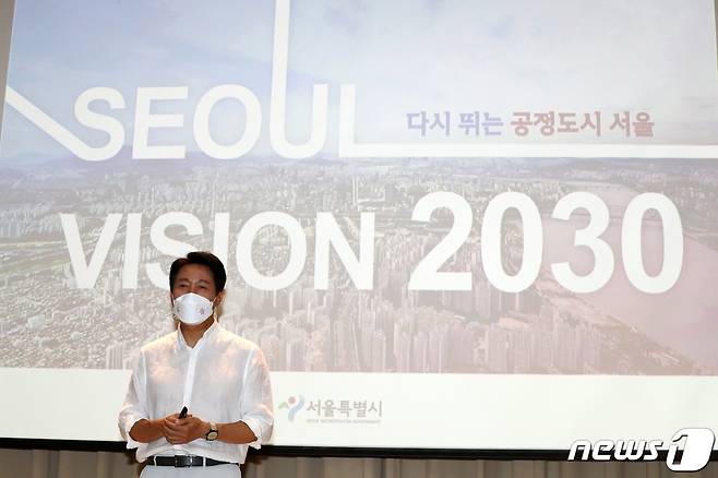 이날 오세훈 서울시장이 발표한 서울비전 2030은 계층 이동 사다리를 복원하고 도시 경쟁력을 회복, 안전한 도시 환경 구현, 멋과 감성으로 품격 제고 등 4가지 정책지향 아래 16대 전략목표, 78개 정책과제 추진이 주요 골자다. 2021.9.15/뉴스1