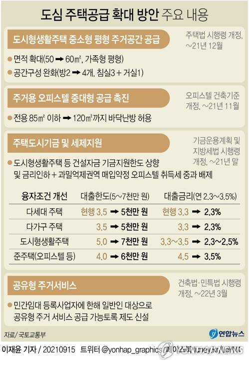 (서울=연합뉴스) 윤종석 기자 = 정부가 도심에 젊은층이 선호하는 전월세 주택을 최대한 확보하기 위해 '중대형 주거용 오피스텔' 카드를 꺼내 들었다.