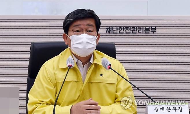 (서울=연합뉴스) 전해철 행정안전부 장관이 15일 정부세종2청사 중앙재난안전대책본부 상황실에서 제14호 태풍 '찬투' 북상에 대비해 20개 중앙부처 및 17개 시도 등 관계기관 담당자들과 긴급 영상회의를 주재하고 있다. 2021.9.15