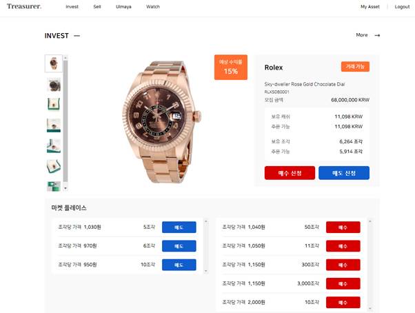 트레져러는 희소성 있는 고가의 상품을 조각 투자, 위탁 판매하는 플랫폼이다.