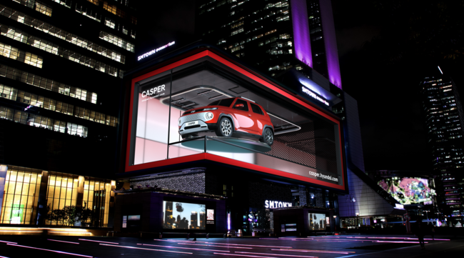 현대차는 캐스퍼 사전계약에 맞춰 한국판 타임스퀘어로 불리는 삼성역 코엑스 ‘K-POP 스퀘어 전광판’을 통해 캐스퍼의 다양한 모습을 3D 광고로 상영하고 있다. /100c@osen.co.kr