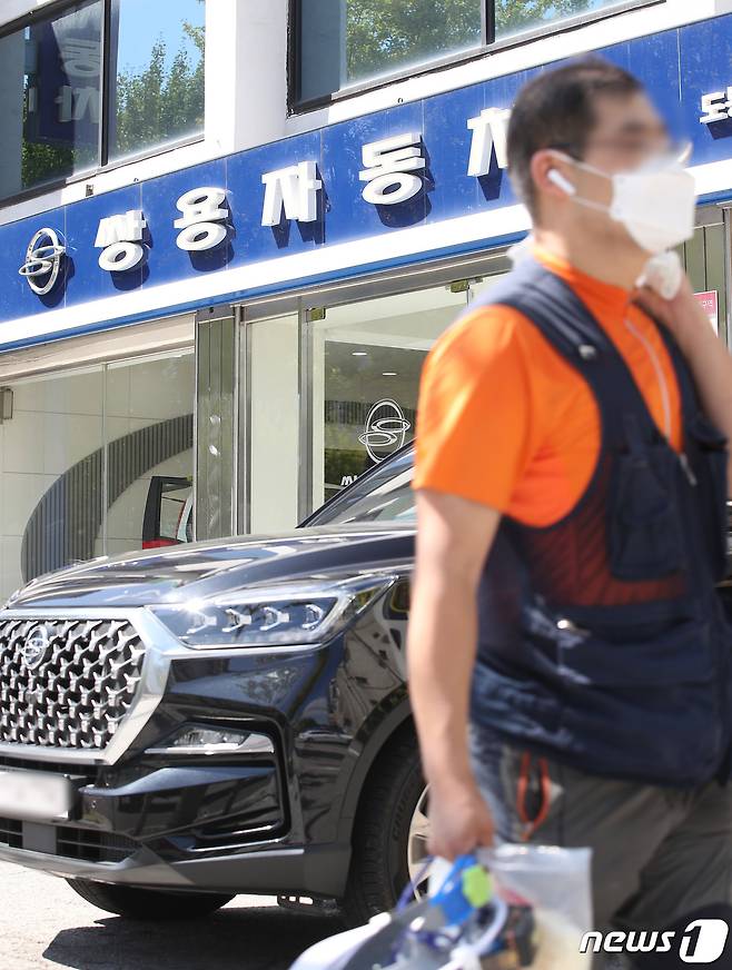 (서울=뉴스1) 임세영 기자 = 15일 오후 서울 시내의 한 쌍용자동차 영업소 앞을 시민이 지나고 있다. 쌍용자동차의 매각 주관사인 한영회계법인은 이날 오후 본입찰을 마감하고, 평가를 거쳐 16일 법원에 결과를 제출할 예정이다. 그동안 쌍용차 인수전에 참여 의사를 밝힌 곳은 총 11곳이다. 기존 유력 인수후보였던 미국 HAAH오토모티브의 새 회사 '카디널 원 모터스'를 비롯해 국내 전기차 업체 '에디슨모터스'(에디슨모터스 컨소시엄), '케이팝모터스'(케이에스 프로젝트 컨소시엄)는 물론 SM(삼라마이더스)그룹 등이 대표적이다. 2021.9.15/뉴스1