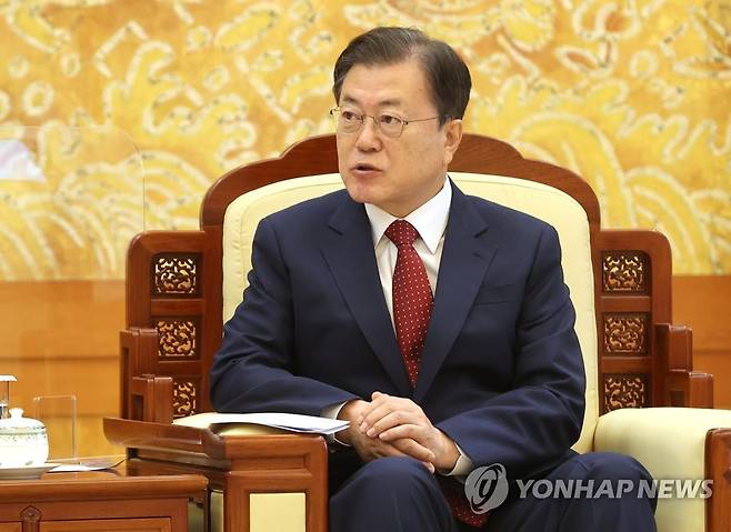 (서울=연합뉴스) 최재구 기자 = 문재인 대통령이 15일 청와대 본관 접견실에서 왕이 중국 국무위원 겸 외교부장을 접견하며 인사말을 하고 있다. 2021.9.15