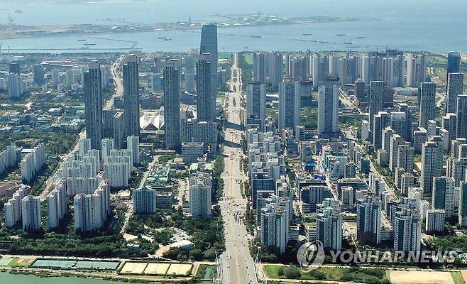 (인천=연합뉴스) 윤태현 기자 = 15일 오후 인천시 연수구 동춘동 청량산에서 바라본 동춘동과 송도국제도시에 고층 아파트 건물들이 우뚝 서 있다. 한국부동산원에 따르면 서울 집값은 7월 0.60%에서 지난달 0.68%로 상승 폭을 키우며 작년 7월(0.71%) 이후 약 1년 만에 가장 높은 상승률을 보였다. 경기(1.52%→1.68%)와 인천(1.33%→1.38%) 집값 역시 전월 대비 상승 폭이 확대됐다. 특히 경기·인천의 집값 상승률은 모두 서울의 2배를 넘겼다. 2021.9.15