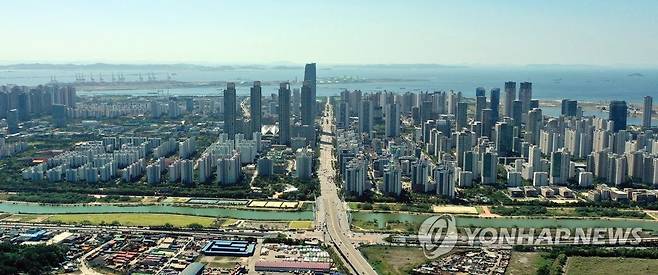 (인천=연합뉴스) 윤태현 기자 = 15일 오후 인천시 연수구 동춘동 청량산에서 바라본 동춘동과 송도국제도시에 고층 아파트 건물들이 우뚝 서 있다. 한국부동산원에 따르면 서울 집값은 7월 0.60%에서 지난달 0.68%로 상승 폭을 키우며 작년 7월(0.71%) 이후 약 1년 만에 가장 높은 상승률을 보였다. 경기(1.52%→1.68%)와 인천(1.33%→1.38%) 집값 역시 전월 대비 상승 폭이 확대됐다. 특히 경기·인천의 집값 상승률은 모두 서울의 2배를 넘겼다. 2021.9.15