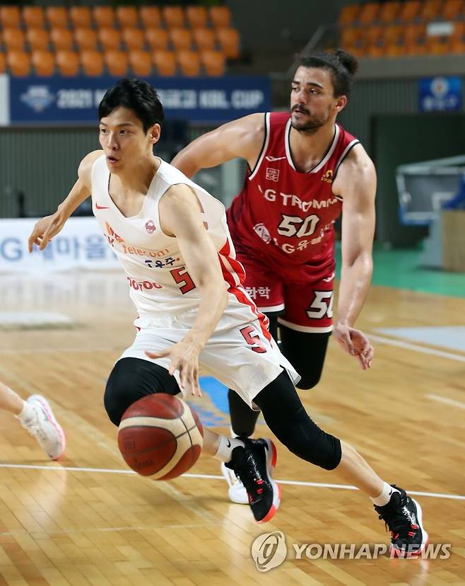 (상주=연합뉴스) 임헌정 기자 = 15일 오후 경북 상주실내체육관에서 열린 2021 MG새마을금고 KBL 컵대회 예선 창원LG 대 서울SK 경기.