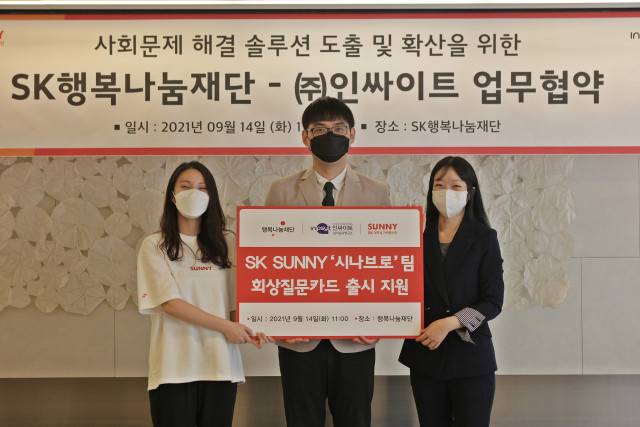 행복나눔재단이 운영하는 SK 대학생 자원봉사단 SUNNY(이하 SUNNY)가 노인 우울증 감소에 도움이 되는 회상 질문 카드 개발을 위해 인싸이트 와이즈박스와 9월 14일 업무 협약(MOU)을 맺었다.