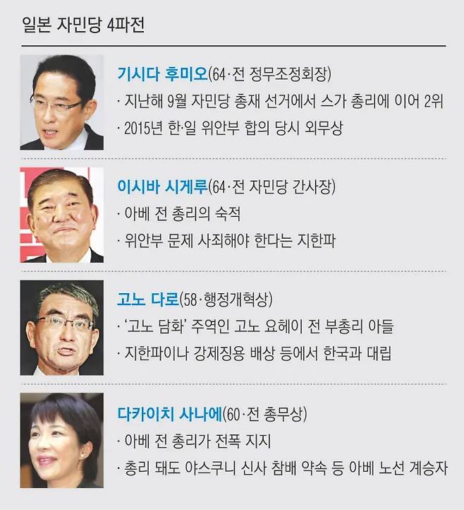 일본 자민당 총재 선거, 친아베 대 반아베 대결로..고노 다로·이시바 뭉치지만 아베 입김은 변수