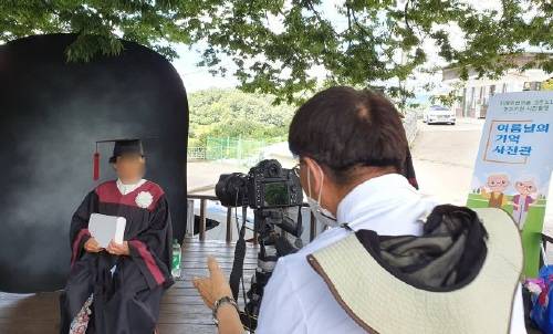 사진 촬영은 무병장수를 기원하는 장수 사진과 학사모 사진 등 두 가지 콘셉트로 실시했으며 군은 촬영된 사진을 2개의 액자에 담아 전달할 예정이다.