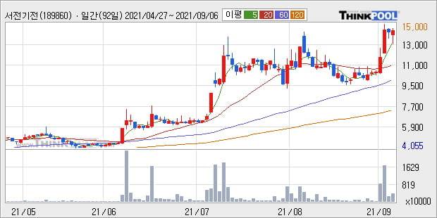'서전기전' 52주 신고가 경신, 단기·중기 이평선 정배열로 상승세
