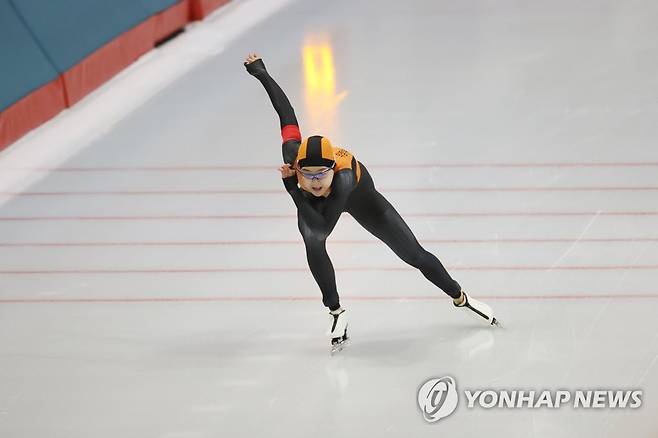 (서울=연합뉴스) 임화영 기자 = 15일 오후 서울 노원구 태릉국제스케이트장에서 열린 2021-2022시즌 국제빙상경기연맹(ISU) 스피드스케이팅 월드컵 파견대표 선발전 겸 SK텔레콤배 제56회 전국남녀 종목별 스피드 선수권대회 여자부 500m 결승에서 김민선(의정부시청)이 질주하고 있다.