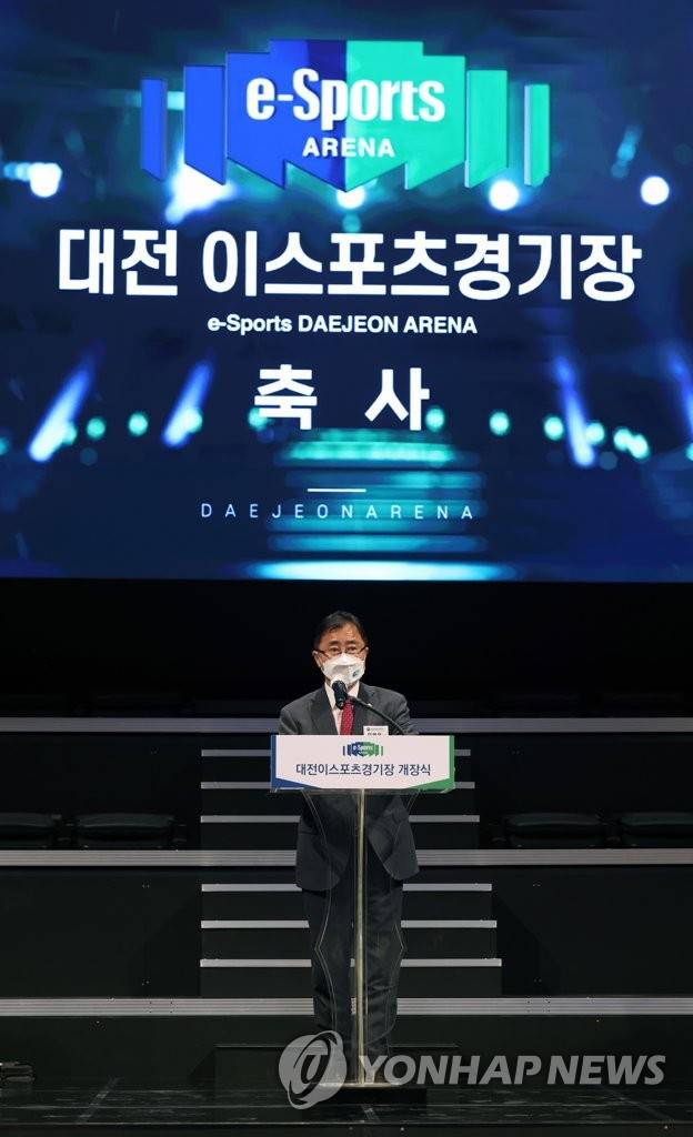 (서울=연합뉴스) 오영우 문화체육관광부 제1차관이 15일 대전 유성구 대전 이스포츠 경기장에서 열린 개장식에 참석해 축사하고 있다. 2021.9.15