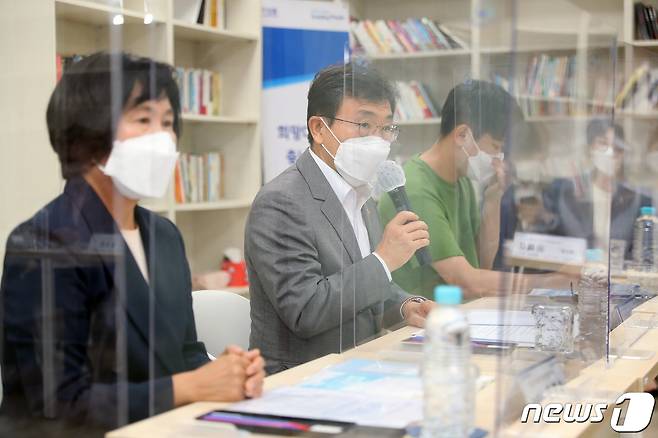 (아산=뉴스1) 신웅수 기자 = 권덕철 보건복지부 장관이 15일 충남 아산시 자립지원전담기관을 방문해 자립준비청년들과 간담회를 하고 있다(보건복지부 제공) 2021.9.15/뉴스1