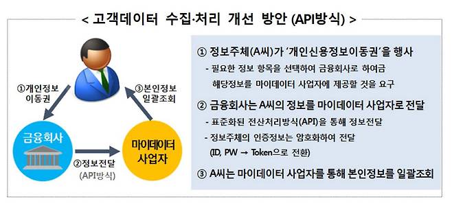 하지만 마이데이터 시대가 열리면 소비자는 자신의 데이터를 직접 관리할 수 있게 되고, 마이데이터 사업자는 정보 주체(개인)가 동의만 하면 정보를 집적하고 융합해 정보관리·자산관리·신용관리 등 다양한 맞춤형 초개인화 서비스를 제공할 수 있다.
