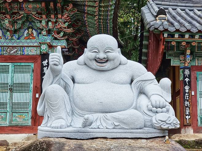 호탕하게 웃고 엄지척을 한 포대화상의 모습이 마치 힘든 시기를 잘 극복해 가고 있는 우리 국민들을 위한 것처럼 보입니다.