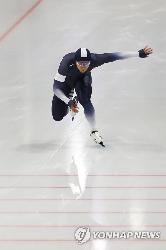 (서울=연합뉴스) 임화영 기자 = 15일 오후 서울 노원구 태릉국제스케이트장에서 열린 2021-2022시즌 국제빙상경기연맹(ISU) 스피드스케이팅 월드컵 파견대표 선발전 겸 SK텔레콤배 제56회 전국남녀 종목별 스피드 선수권대회 남자부 500m 결승에서 김준호(강원도청)가 질주하고 있다.
