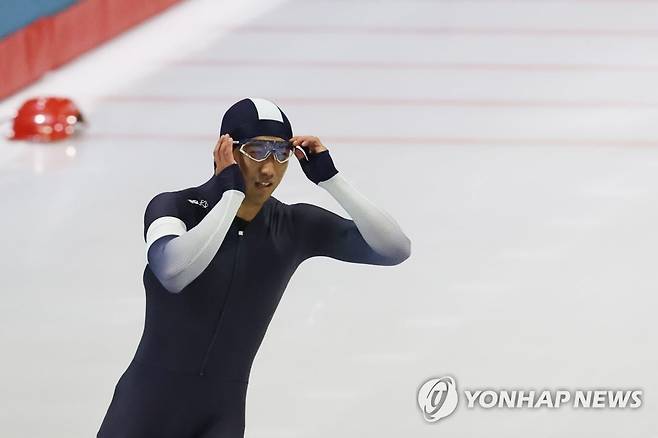 (서울=연합뉴스) 임화영 기자 = 15일 오후 서울 노원구 태릉국제스케이트장에서 열린 2021-2022시즌 국제빙상경기연맹(ISU) 스피드스케이팅 월드컵 파견대표 선발전 겸 SK텔레콤배 제56회 전국남녀 종목별 스피드 선수권대회 남자부 500m 결승에서 김준호(강원도청)가 결승선을 통과한 뒤 기록을 확인하고 있다.