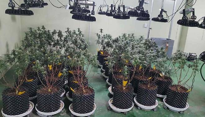 검찰은 이들에게 다크웹을 통한 마약류 유통사범 중 처음으로 형법상 범죄단체조직·가입·활동죄를 적용해 기소했다. 사진은 이 조직이 재배하다 적발된 대마. 2021.9.15 [서울중앙지검 제공. 재판매 및 DB 금지]