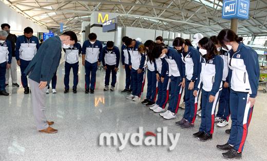 [MD포토] 양궁대표팀 '예의바른 인사 나누며 출국'
