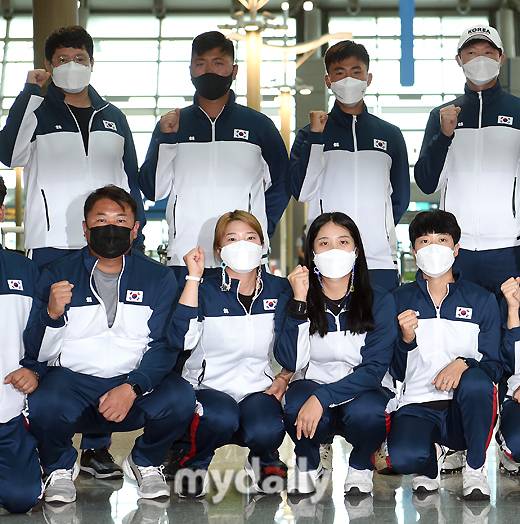 [MD포토] 도쿄올림픽 태극궁사들 '세계양궁선수권대회도 응원해주세요'